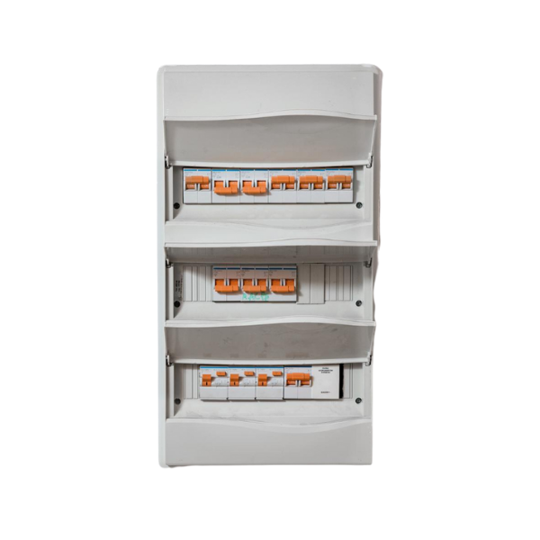 Cuadro eléctrico modular con 12 circuitos protegidos por interruptores automáticos. Fabricado con materiales de alta calidad y fácil de instalar. Perfecto para viviendas y pequeños negocios.